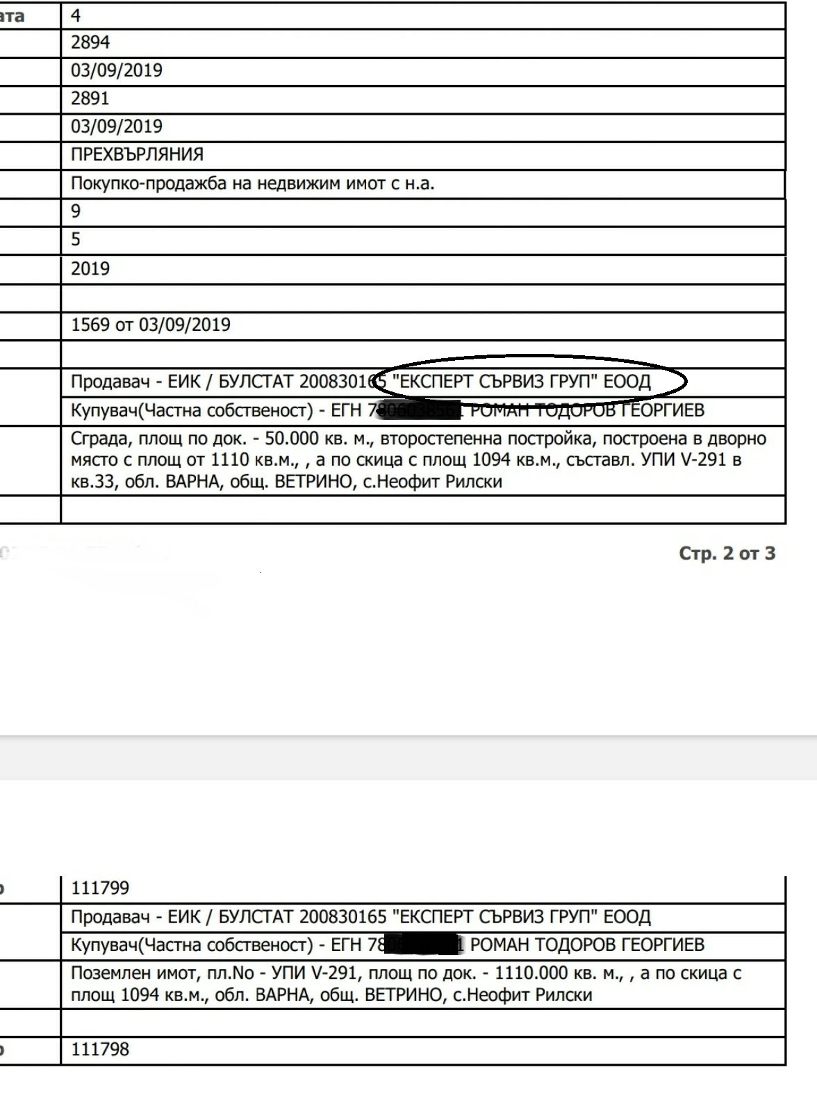 Проверяваме и другите сделки на Роман Георгиев и се натъкнахме на интересна обвързаност. Роман Георгиев закупува първият си имот в село Неофит Рилски от фирма „ЕКСПЕРТ СЪРВИЗ ГРУП“ ЕООД , БУЛСТАТ 200830165, чийто собственик е Мартин Сребров от Хоум Тую.